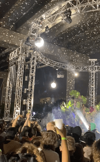 As a TikTok by one attendee articulated, “I love New York you can do things like pay $150 to watch Bjork dress up as a chicken and dj from inside a bush for two hours rotating between construction sight noises and tribal music”.